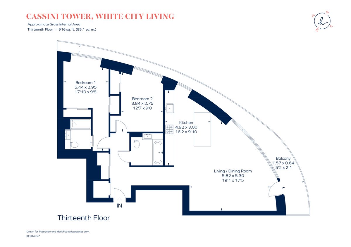2 beds, 2 baths, 1 reception, 916 sq. ft, EPC Rating: B