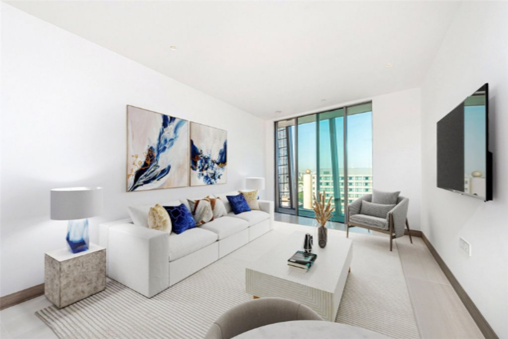 Квартира с одной спальней и площадью 670 квадратных футов расположена на 15-м этаже самого знакового жилого здания Великобритании. Она оснащена полностью интегрированной кухней с островом и современными приборами, переходящая в просторную гостиную с роскошной отделкой, а окна от пола до потолка максимально улучшают естественное освещение.