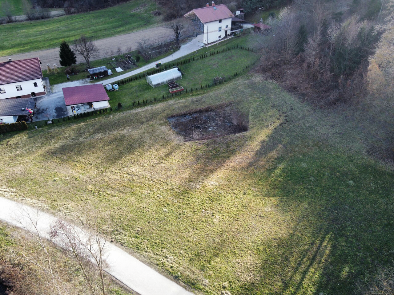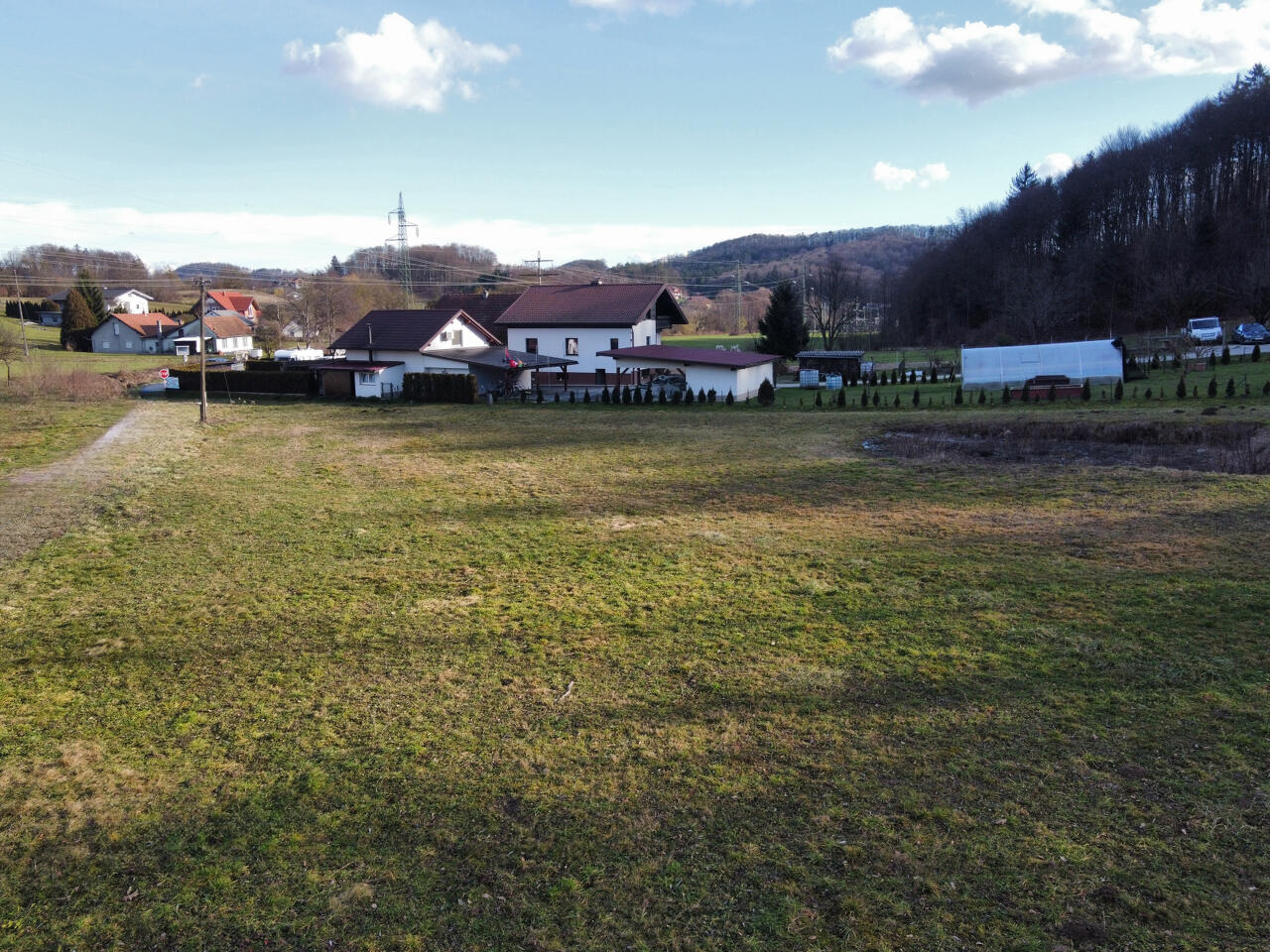 Земельный участок, предназначенный для строительства, общей площадью 2.419 м², расположен в местечке Сподне честово, неподалеку от центра Рогашка Слатина. Объект является земельным участком с разрешением на строительство, расположенным на солнечной стороне у опушки леса в небольшом поселении.