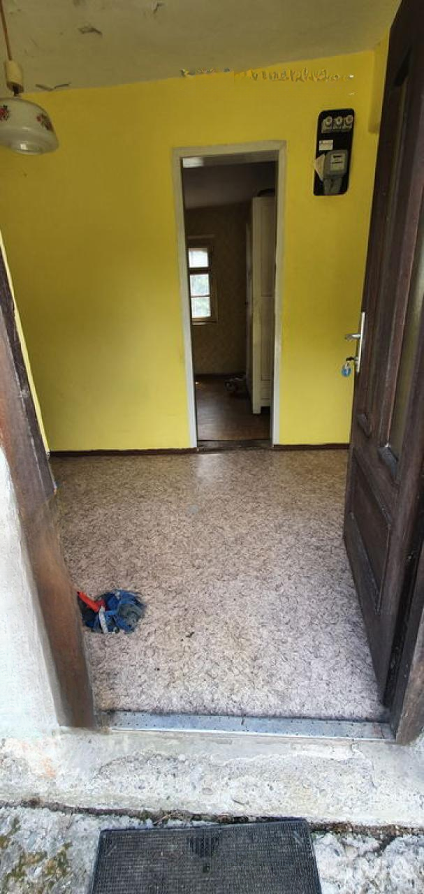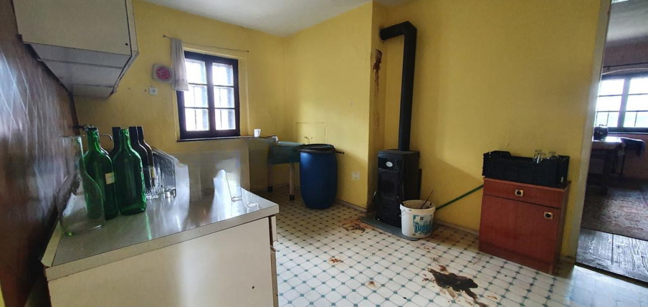 Фермерский дом, построенный в 1850 году и обновлённый в 1970 году, включает подвал с арочной кладкой и двумя кладовыми, в первом этаже расположен холл, ванная комната, кухня и комната. Общая площадь дома составляет 74,7 м². Также в состав усадьбы входит хозяйственная постройка, в которую входят сарай, дровяник и небольшой хлев. Имеются подключения к электричеству, водоснабжению и септику.