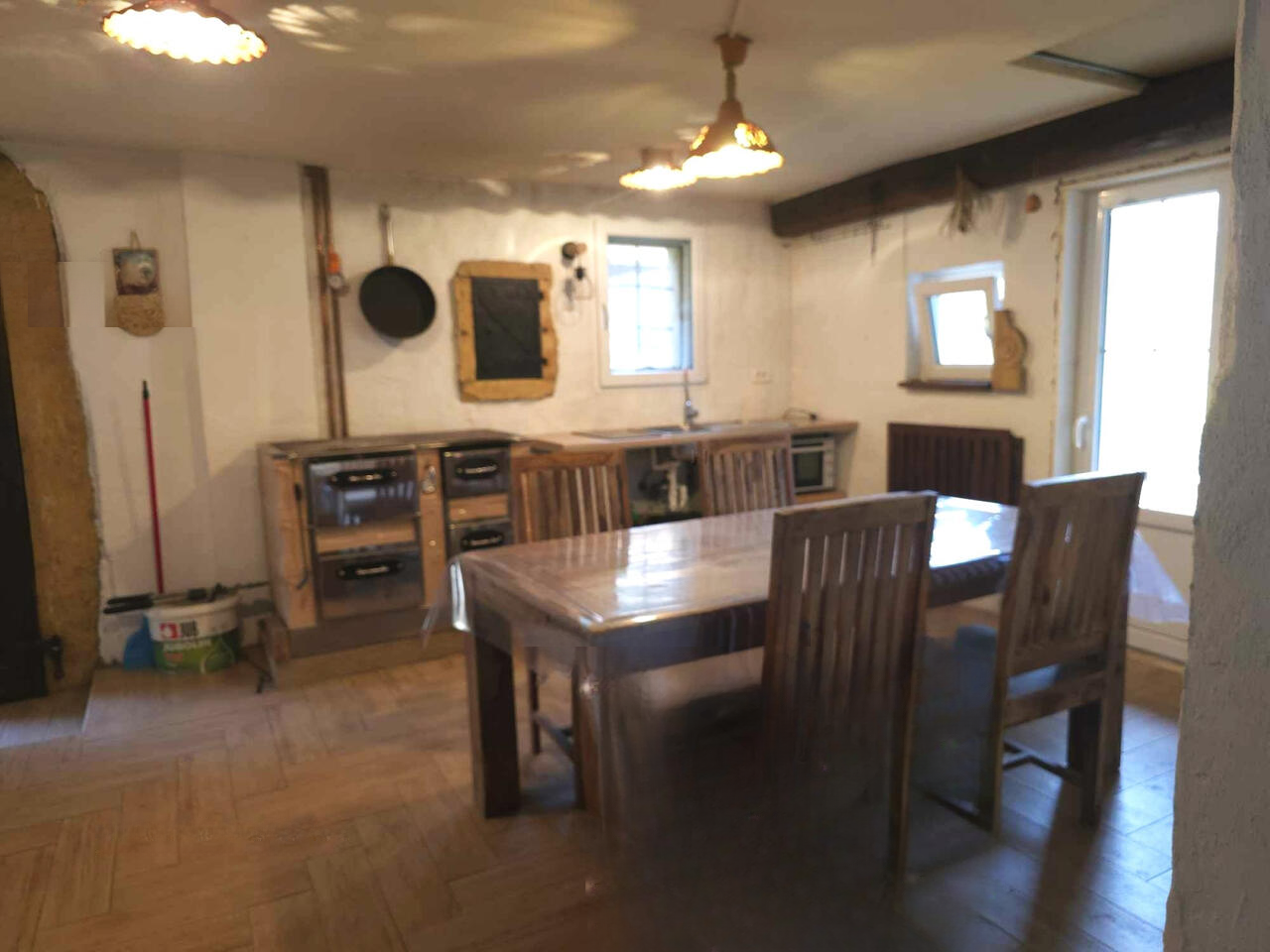 Дом кирпичной постройки, регулярного ухода и частичной реставрации, располагает подвалом, первым этажом и мансардой. Внутреннее пространство включает в себя прихожую, ванную комнату, кухню с обеденной зоной, спальню, дополнительную комнату и гостиную с прекрасным видом. В кухне и прихожей выложены керамические плитки, а в комнатах – ламинат. Душевая комната полностью функциональна, с центральным отоплением на дровах, окна двухслойные из ПВХ. Подвал имеет арочную конструкцию.