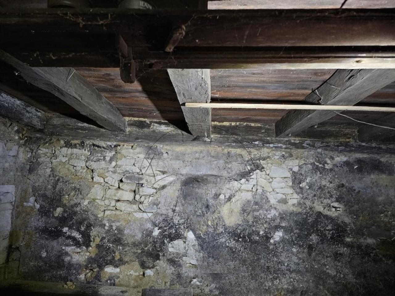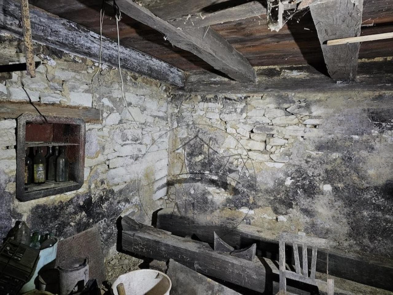 Дом светлый и уютный, требуется небольшое обновление. На первом этаже находятся входное пространство с лестницей, ванная комната (пока не законченная, но трубы уже установлены), кухня с обеденной зоной и две комнаты. Мансарда предлагает коридор и незавершённую комнату с выходом на балкон. Окна деревянные с изоляцией и жалюзи, крыша двускатная с покрытием из асбестоцементных плит. За домом установлены стол и скамья для отдыха.