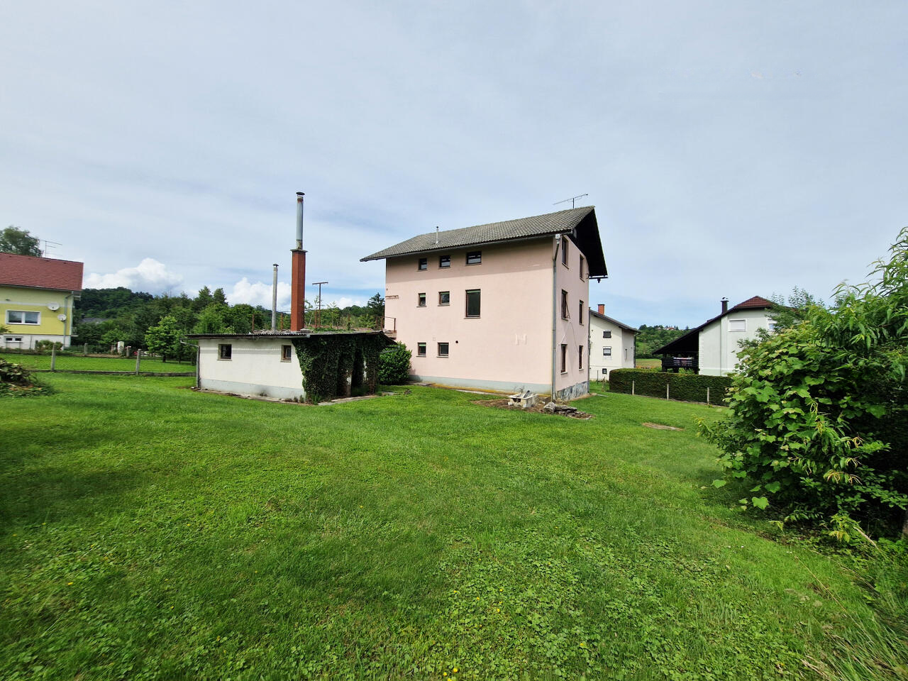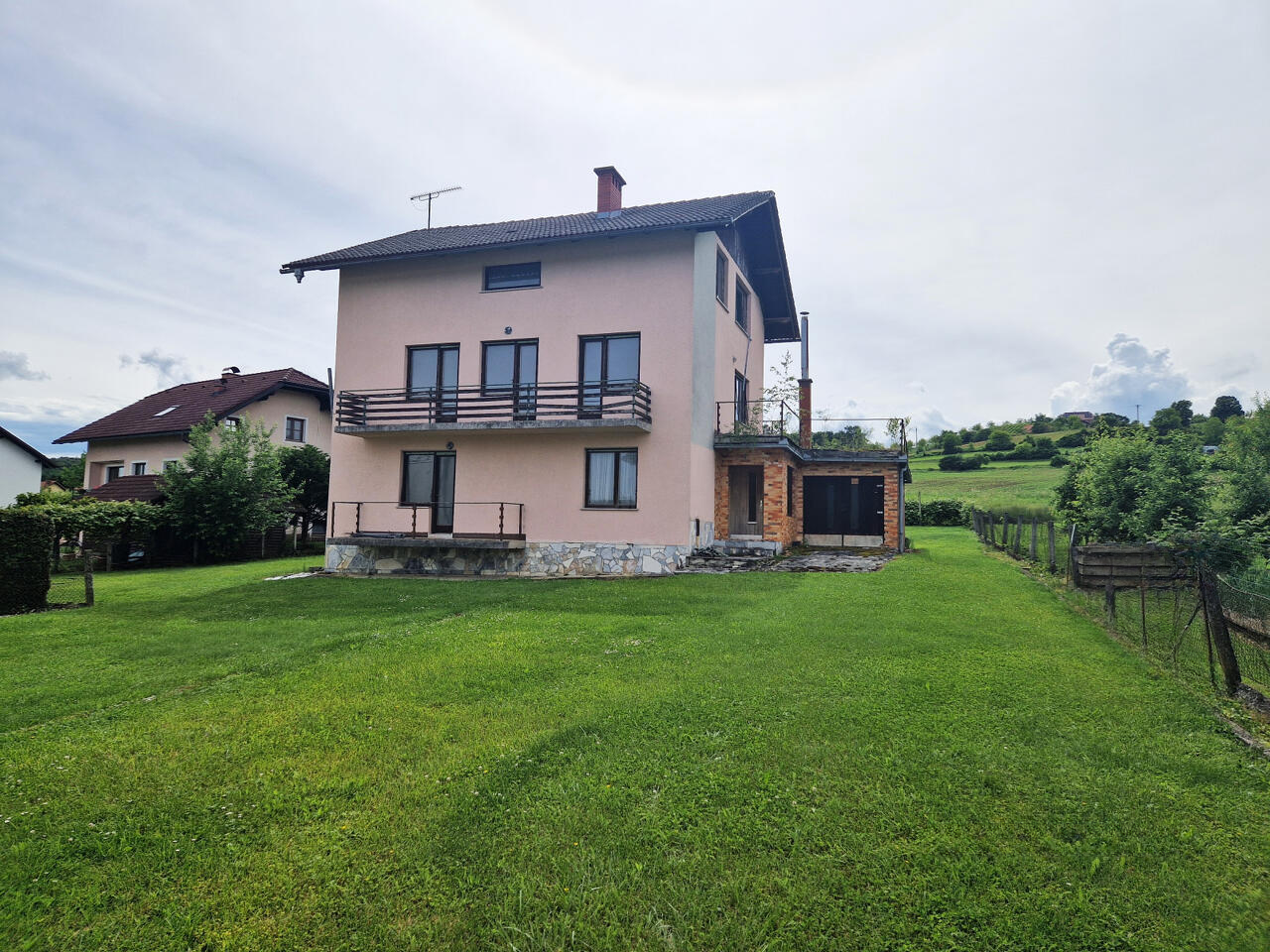 Представляем вашему вниманию одноэтажный дом в живописном поселке Имено, рядом с Подчетртеком. Площадь дома составляет 299,4 м², располагается на просторном участке земли общей площадью 1 292 м². Дом с тремя этажами: первый этаж, второй этаж и мансарда. Построен в 1990 году, дом нуждается в обустройстве, так как долгое время оставался невозделанным.